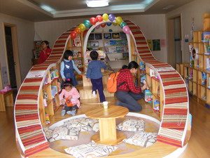 悠贝童书馆也是京城一家较大规模的儿童图书阅读体验中心,自2009年2月创办以来,短短两年,便已发展了13家分馆。他们以亲子阅读为媒,期望通过阅读为出版方、家庭、早教行业搭建起一个交流的平台,再整合自身独有的专家、学者等资源对优秀的儿童读物进行推广。