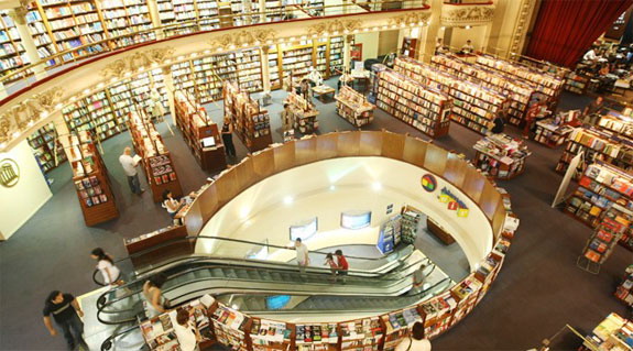 雅典人书店位于阿根廷首都布宜诺斯艾利斯的商业街,前身是大建筑师皮罗和托莱斯.阿蒙戈于1860年为阿根廷女王玛斯.格鲁克斯曼所建造的宫殿。雅典人书店共有3层,营业面积逾2,000平方米,为南美之冠。书店内部装潢典雅,穹顶壁画由意大利画家纳萨雷诺.奥兰迪绘制,表现了经历过战争的人们对和平的企盼。该书店称得上是布宜诺斯艾利斯的地标性建筑。