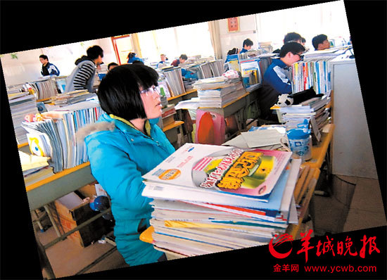 高州市第一中学,学生的桌上堆满了琳琅满目的教辅