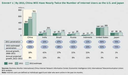 报告还称,届时中国将有7.01亿网民,比目前的5.13亿有所增加,互联网渗透率将达到51%。