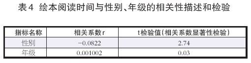 其四,小学生绘本阅读时间在性别和年级上的差异分析。