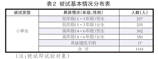 综合以前的研究发现,不同年级的个体在阅读习惯上有很大差异。小学4年级以前,个体以具体形象思维为主要思维方式。小学4年级则是思维发展的飞跃期,儿童的思维逐步以抽象逻辑思维为主。所以,笔者把小学生按照年级和性别分成4个群体:低年级(1~3年级)男生、低年级(1~3年级)女生、高年级(4~6 年级)男生和高年级(4~6 年级)女生。详见表2。