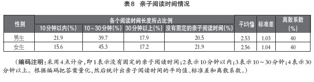 本次调查发现,学前期儿童家长对亲子阅读的参与度比较低,亲子阅读时间也比较短,甚至还有20.4%的家长被试表示没有固定的亲子阅读时间。这对幼儿早期阅读各方面能力的发展非常不利,应该引起高度重视。亲职教育在儿童成长过程中是非常重要的。所谓亲职教育,亦称父母教育是一门教导父母理解与满足子女身心发展需求,善尽父母职责,以协助子女有效成长、适应与发展的学问。