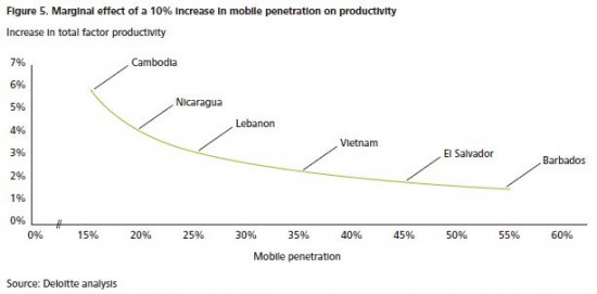另外,此报告也指出,移动设备普及化的过程中,增加10%的渗透率最高可以提升生产力4.2个百分点。