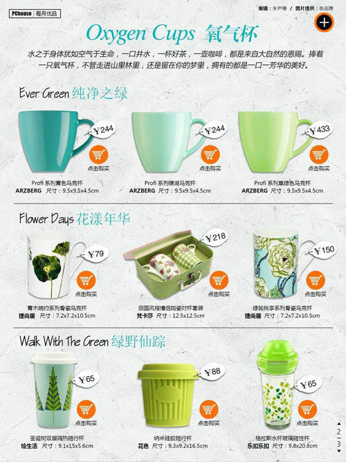 这也是电子杂志在今年发展的一个亮点,很多杂志正在尝试这条道路。《PChouse家居杂志》也正在探索,初期是与其旗下的家居优品(家具类导购软件)进行合作,现在逐步拓展到天猫的很多商家。电子杂志因为内容会展示很多精美的图片,用户阅读后容易产生购买欲望,因此和电商有了结合的基因,用户可立即点击按钮跳转到电商平台上进行购买;如果是和导购应用进行合作,则杂志用户的下单会算为导购应用的下单。