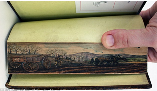 乍一看,这些200年历史的图书有着完好的装订,并在书籍边缘处做过镀金的处理。然而,仔细看,你就会发现在书籍的边缘处隐藏精美而且复杂的画作。人们称这为前切口饰图。然而它们的存在对于很多人来说,却是个秘密。