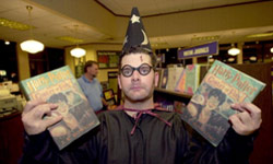一位Barns&Noble书店的员工手持《哈利波特与火焰杯》,图片来自Erik S. Lesser