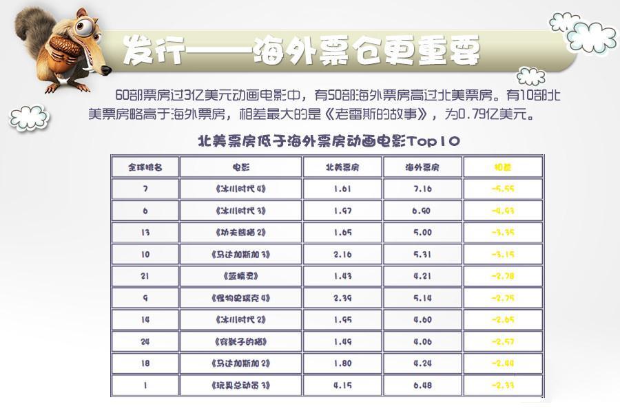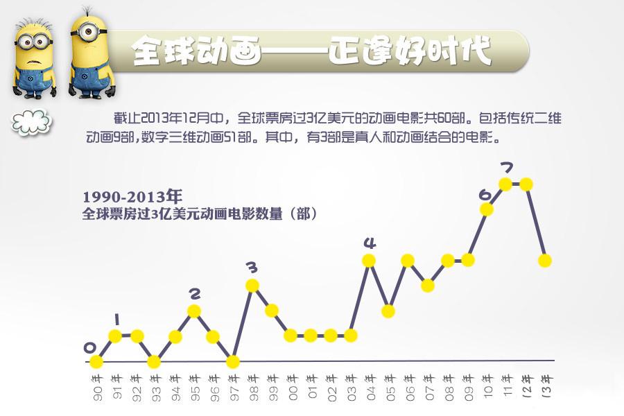 (备注:这60部动画都是美国制造,而美国现在拍一部动画片的制作成本在1亿美元左右,如果按1:3的好莱坞赚钱法则计算,一部动画电影收3亿美元全球票房,即可视为不亏本,有些还会通过卖影碟、周边产品等赚到钱。)