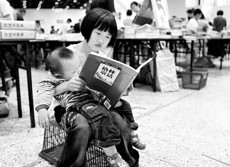 《女孩,你在哪里》(组照)展现了一位10岁左右的女孩在书市上带着弟弟读书的生动场景,展现了女孩酷爱读书、追逐梦想的精神:一会儿弟弟睡在怀中,女孩在读书;把抱不动的弟弟放在书筐里,女孩拖着书筐仍然在读书;坐等妈妈的时候,女孩继续在读书……