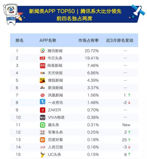 有BAT的地方就有恩怨和江湖,移动资讯行业从未像2016年这样热闹过。基于WiFi 万能钥匙9亿用户大数据的《2016年新闻资讯类APP排行榜》显示,腾讯系在市场占有方面仍占据优势。另一方面,大数据服务商QuestMobile公布的移动新闻资讯产品11月最新数据也显示,月活跃度方面,腾讯新闻和天天快报分别以2.2亿和 9192万分列第一和第三名。数据方面表现较为优秀。