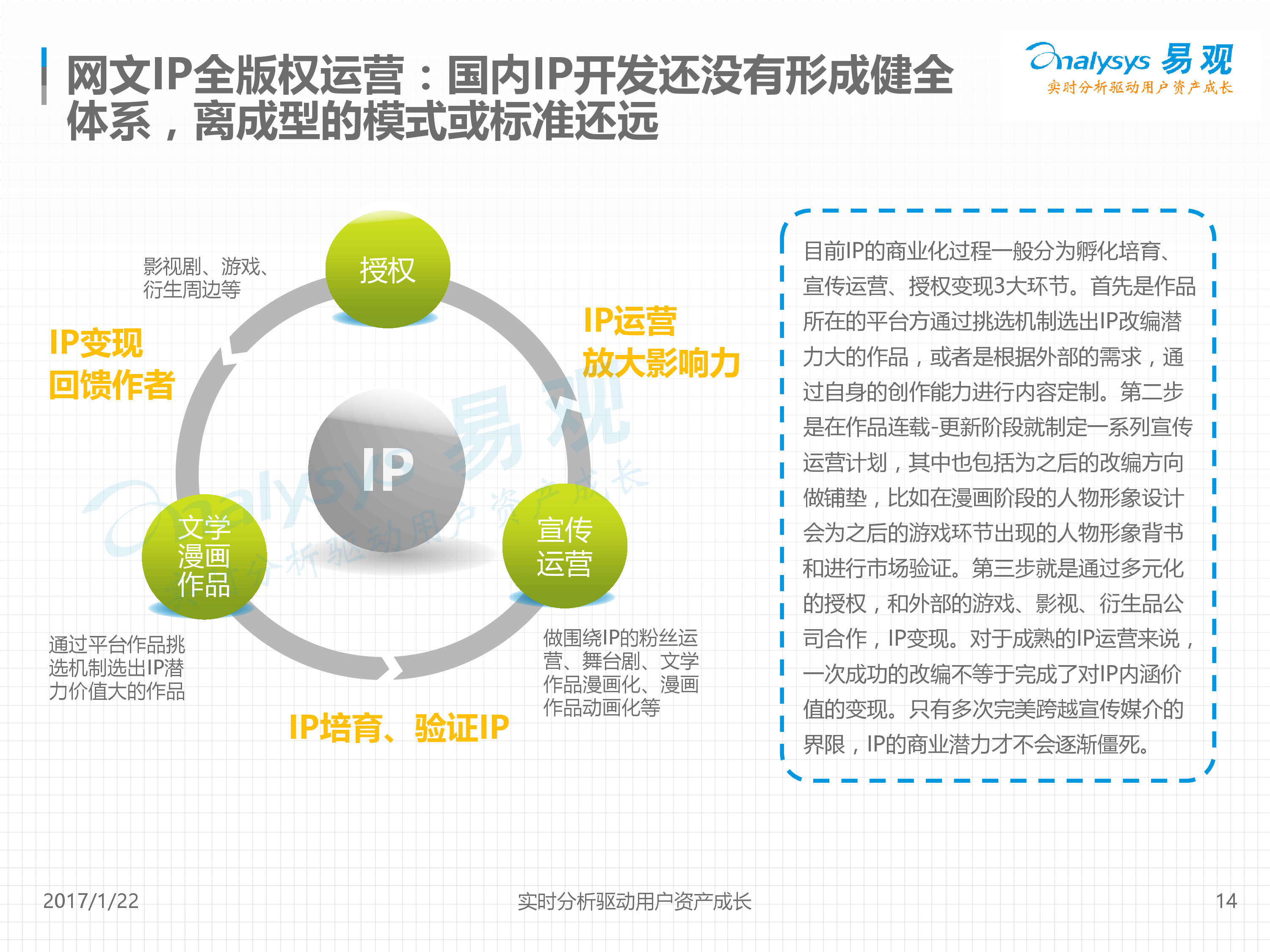 易观发布的《中国IP市场专题分析2017》的专题研究报告对中国IP市场的发展现状、厂商、用户属性及产期发展趋势做了详细的研究分析。