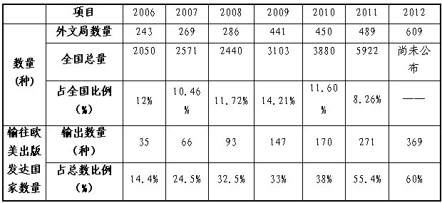 路径1:书刊出口贸易 所属中国国际图书贸易总公司作为全国规模最大、历史最悠久的图书进出口贸易公司,出口贸易额始终占据全国半壁江山。2011年,全国出版物进出口经营单位累计出口3905.51万美元,其中外文局所属中国国际图书贸易集团有限公司出口贸易额2198万美元。2012年,出口贸易额2428万美元,同比提高10.5%。