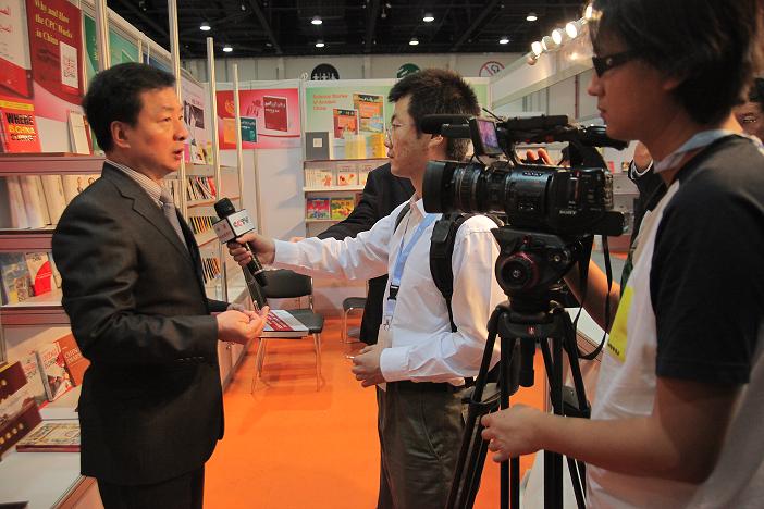 2012年阿布扎比书展上中国外文局局长周明伟接受记者采访 2012年墨西哥书展上中国外文局常务副局长郭晓勇接受记者专访 2012年美国书展上中国外文局副局长齐平景接受记者采访 2012年伦敦书展上中国外文局展团人员与客户洽谈