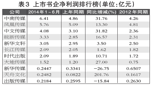 与2013年 同期的情况类似,从各家的分行业情况来看,尽管出版、发行等主营业务收入依然是绝大多数上市书企的支撑,但并非完全与总体营收同步增长,当中也有不少行业 同比有不同程度的下滑。诸如中南传媒的物资、印刷、报媒同比分别下降了29.36%、11.31%、0.98%,中文传媒的物流同比下滑了14.69%, 长江传媒的出版减少了8.59%,新华传媒、皖新传媒的音像制品同比分别下滑11.36%和5.41%,出版传媒、大地传媒的印刷同比下滑了3.38%和 19.14%。此外,皖新传媒的教材销售和广告的营收有两位数的下降,而天舟文化更是彻底放弃了之前的教育咨询业务。 上一页 [1] [2] [3] [4] 下一页