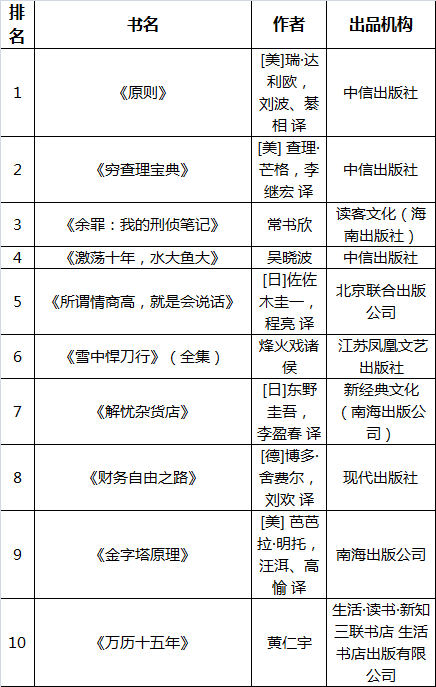 ◆ 电子书榜:纸质图书带动电子书销量 电子书销量TOP10与传纸质书销量TOP10中,除《原则》同时上榜之外,其他图书均没有重合。但是将纸质图书的榜单延长到TOP200发现,电子书畅销书TOP10榜单中的7个品种也进入了纸质畅销书榜单,这也说明在纸质书中销售好的图书,相应的电子书也会有好的销量。