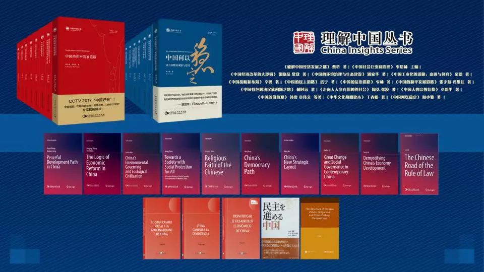 “理解中国”“中国制度”“简明中国”“当代中国学术思想史”等系列丛书是社科社向世界展示真实、立体、全面的中国的部分载体。其中,“理解中国”丛书已出版18种中文版,并已签约59种,有11个语种,出版21种,在海内外的影响力继续提升。“中国制度”系列是目前中国学术界和出版界唯一一套系统梳理和研究中国制度的丛书,侧重对当代中国发生历史巨变的原因和中国成功的制度优势的分析探讨。而“简明中国”丛书包括《简明中国历史读本》《简明中国近代史读本》《中华文化简明读本》等,旨在帮助国外读者了解“历史的中国”和“文化的中国”,进而有助于他们了解当代中国人的思维方式和价值观。